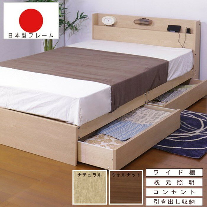 棚 照明 コンセント 引出付きベッド セミダブル 低反発ウレタン入ポケットコイルスプリングマットレス付 to-10-361-sd-108587送料無料 北欧 モダン 家具 インテリア ナチュラル テイスト 新生活 オススメ おしゃれ 後払い フレーム