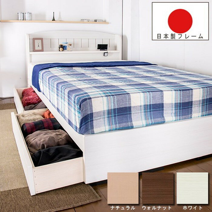 棚 コンセント 引き出し付きカントリー調ベッド セミダブル SGマーク付国産ハードマットレス付 to-10-a322-sd-108378送料無料 北欧 モダン 家具 インテリア ナチュラル テイスト 新生活 オススメ おしゃれ 後払い フレーム