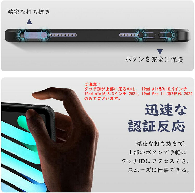 商品説明: 【対応機種】 ・iPad 10.2 (2019年モデル) 第7世代:A2197、A2198、A2199、A2200 ・iPad mini5(アイパッドミニ5)iPad mini 2019年モデル,第5世代:A2133、A2124、A2126、A2125 ・iPad Air3 10.5 インチ(2019年モデル):第3世代,A2152、A2123、A2153、A2154 ・iPad Pro 10.5インチ(アイパッドプロ 10.5 2017):A1701、A1709、A1852 ・iPad 9.7 2018 (アイパッド 9.7 2018)iPad 6 2018 9.7インチ 2018年モデル 第6世代:A1893、A1954 ・iPad 9.7 2017 (アイパッド 9.7 2017)iPad 5 2017 9.7インチ 2017年モデル 第5世代:A1822、A1823 ・iPad Pro 11インチ (2018年モデル):A1980、A2013、A1934、A1979 【高品質】 高品質な耐衝撃のTPU素材を採用しており、四隅をよく覆う、汚れ、衝撃や擦り傷を防止でき、磨耗に耐え、滑り止め防塵、分裂防止などの全面の保護を提供しております。